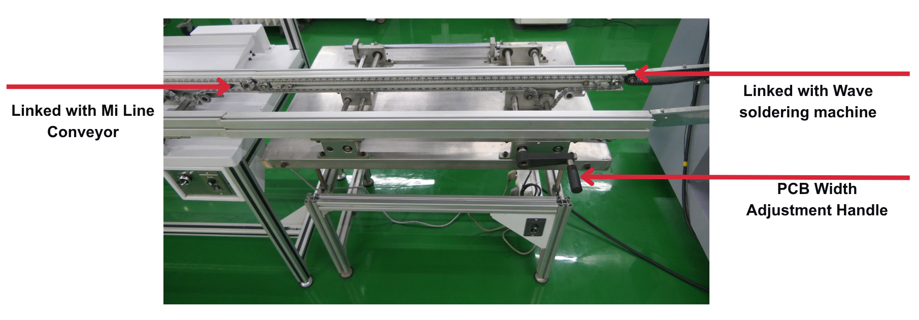 By integrating seamlessly with upstream and downstream equipment like manual insertion lines, wave soldering machines, reflow ovens, and inspection stations, this inlet conveyor enhances efficiency, reduces downtime, and supports flexible line configurations.