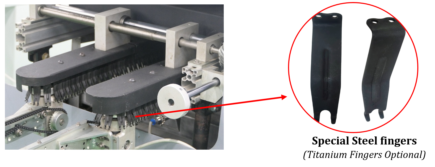 | 3 | Special Steel fingers (Titanium Fingers Optional) | 10 pcs |